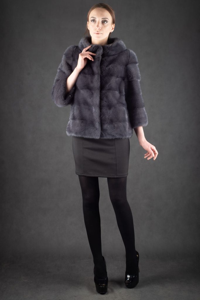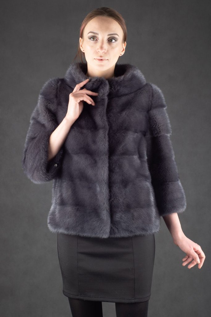 Куртка из меха норки, воротник шанель, рукав 3/4