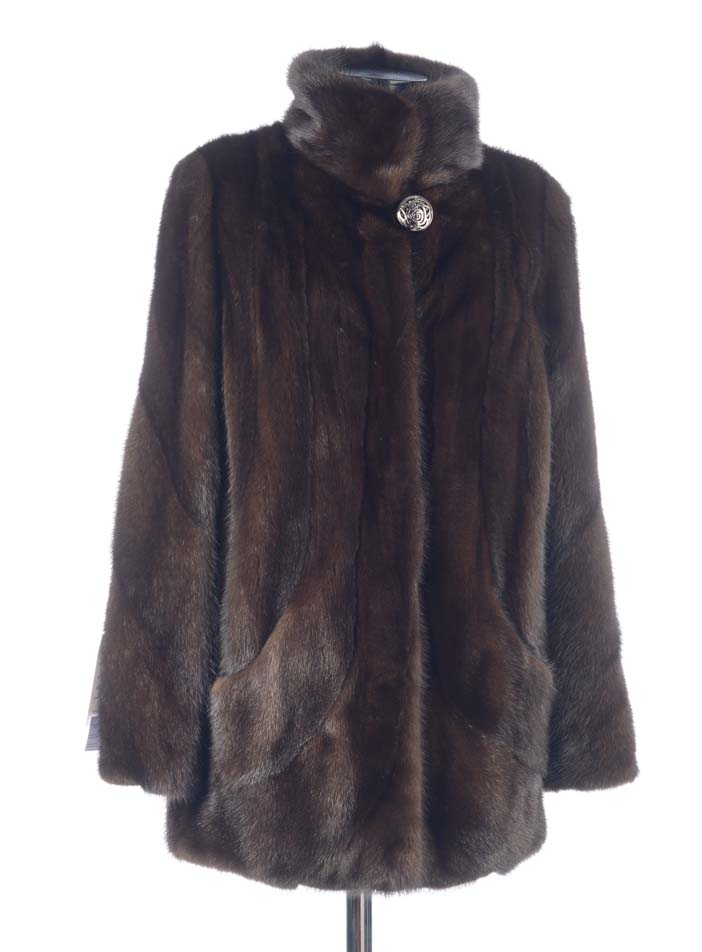 Куртка из меха норки с английским воротником и поясом, blackglama