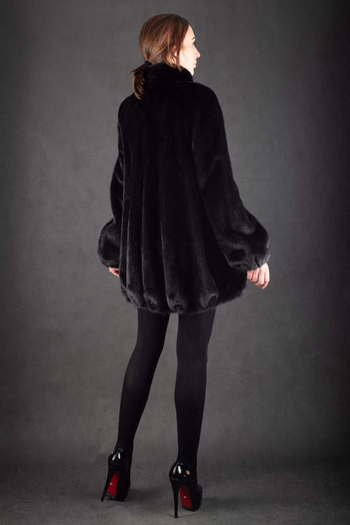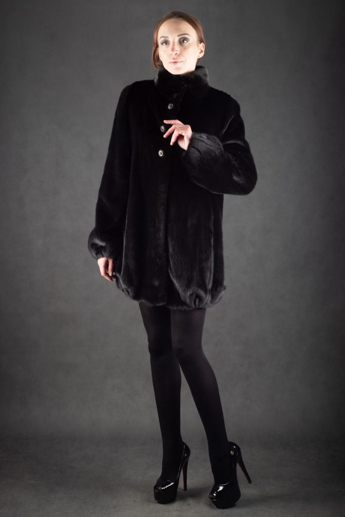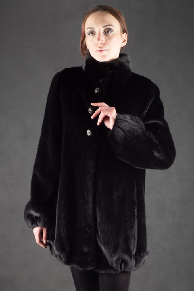 Манто из меха норки, воротник стойка, балон
