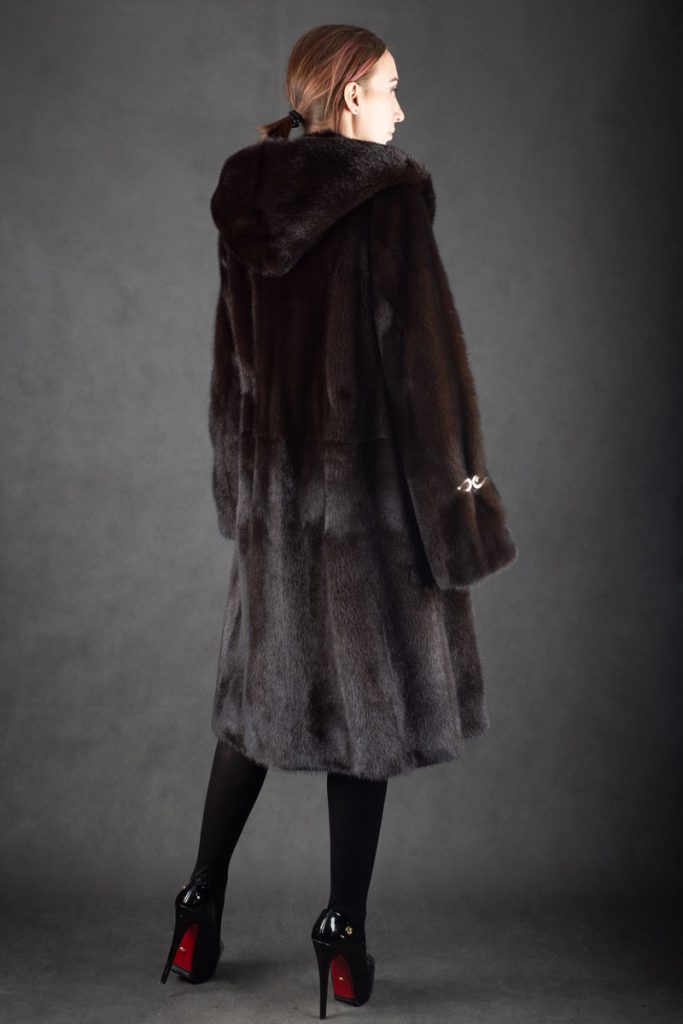 Пальто из меха норки, воротник стойка, гофрэ, категория меха блекглама