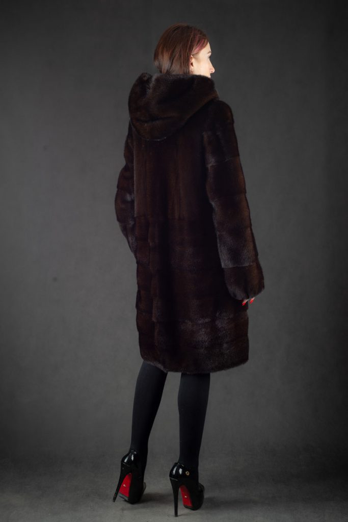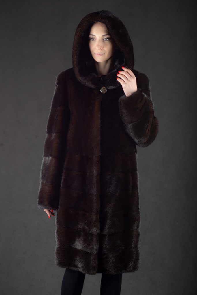 Пальто из меха норки с английским воротником и поясом, blackglama