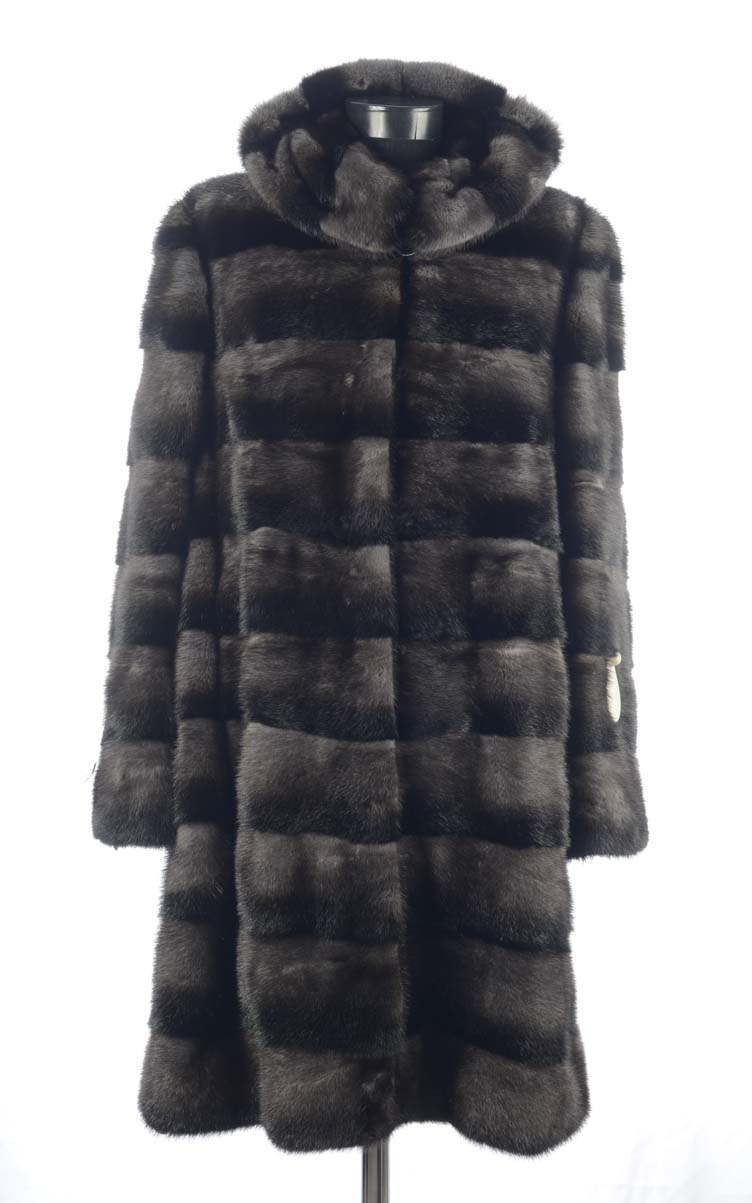 Пальто из меха норки с капюшоном, роспуск, перевернутый мех