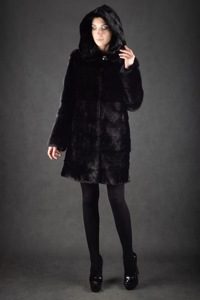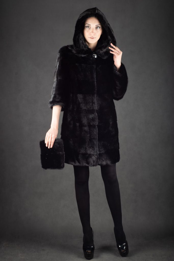 Куртка из меха норки с английским воротником и поясом, blackglama