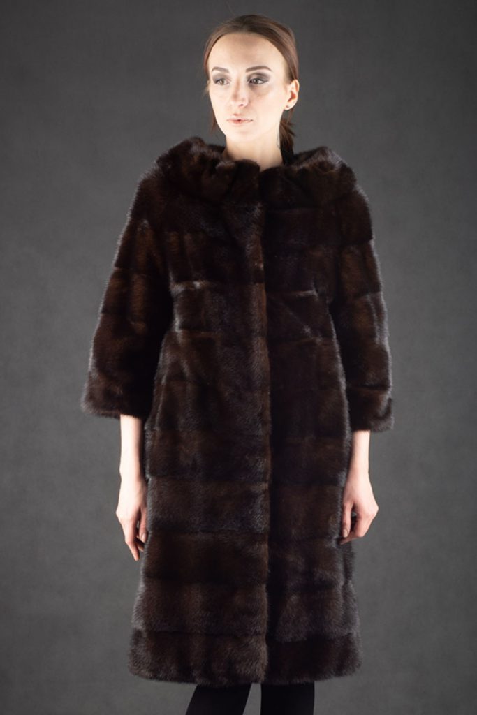 Пальто из меха норки, воротник шанель, поперечка,укороченный рукав