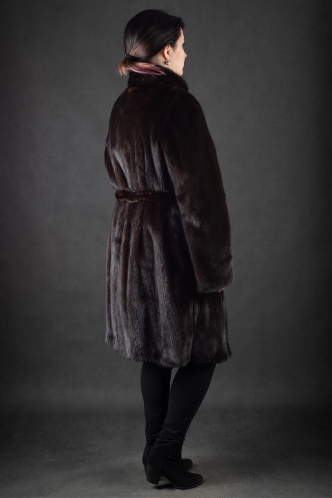 Пальто из меха норки с английским воротником и поясом, мех скан-блек