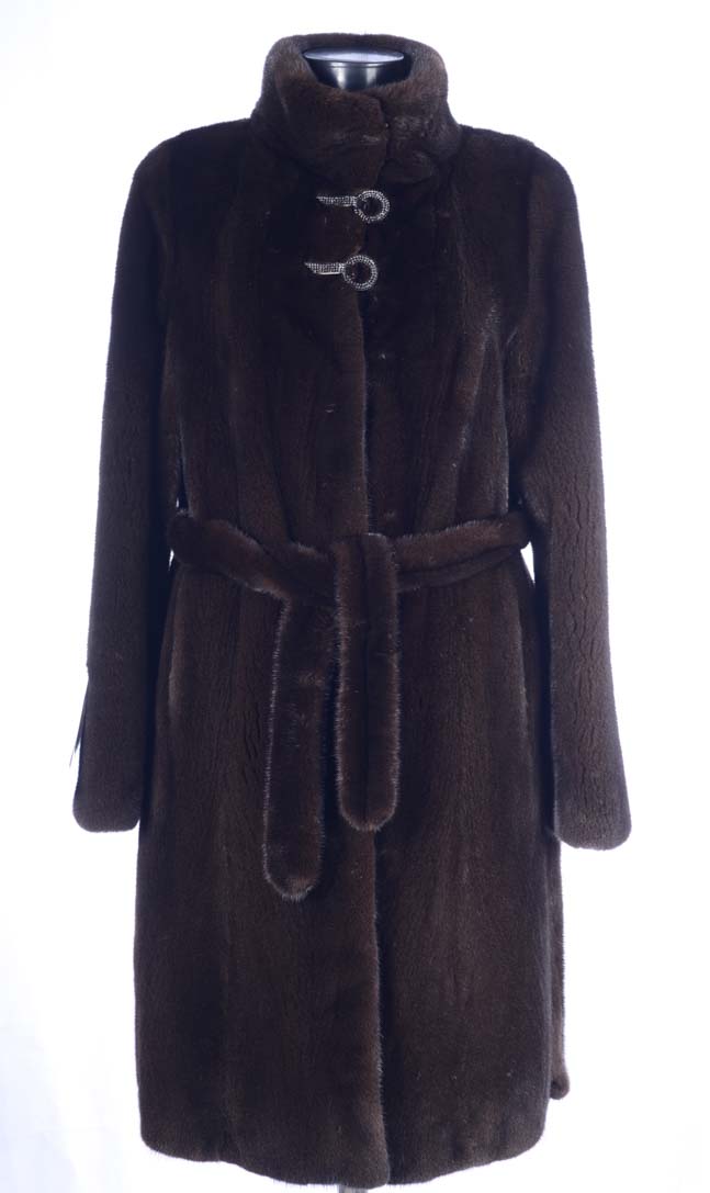 Пальто из меха норки с английским воротником и поясом, blackglama
