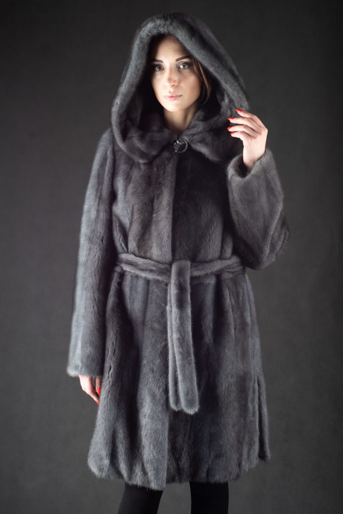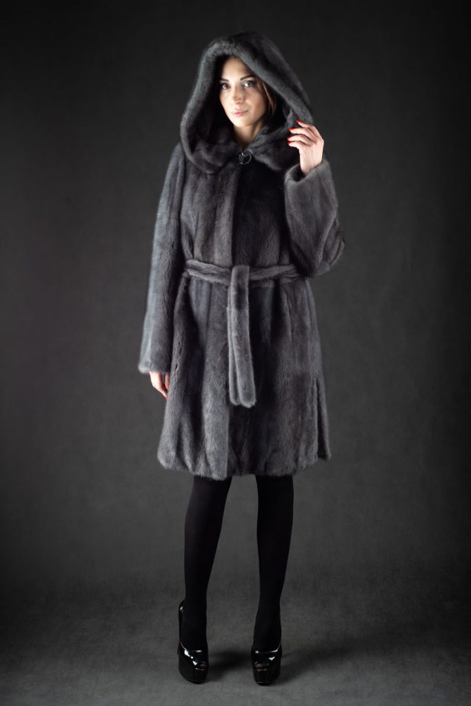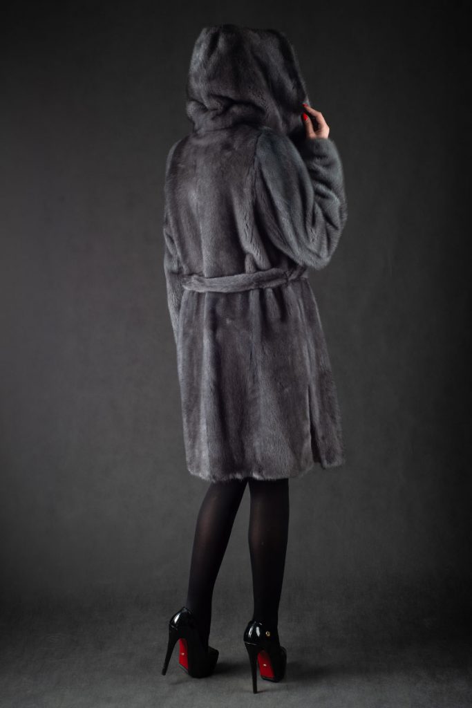Куртка из меха норки с английским воротником и поясом, blackglama