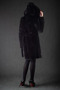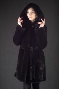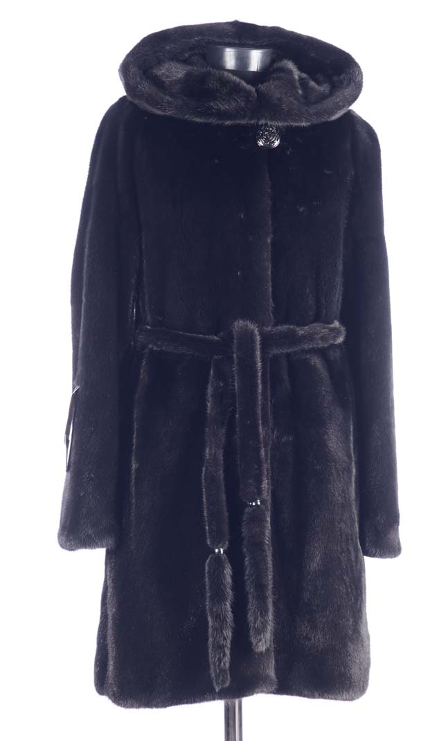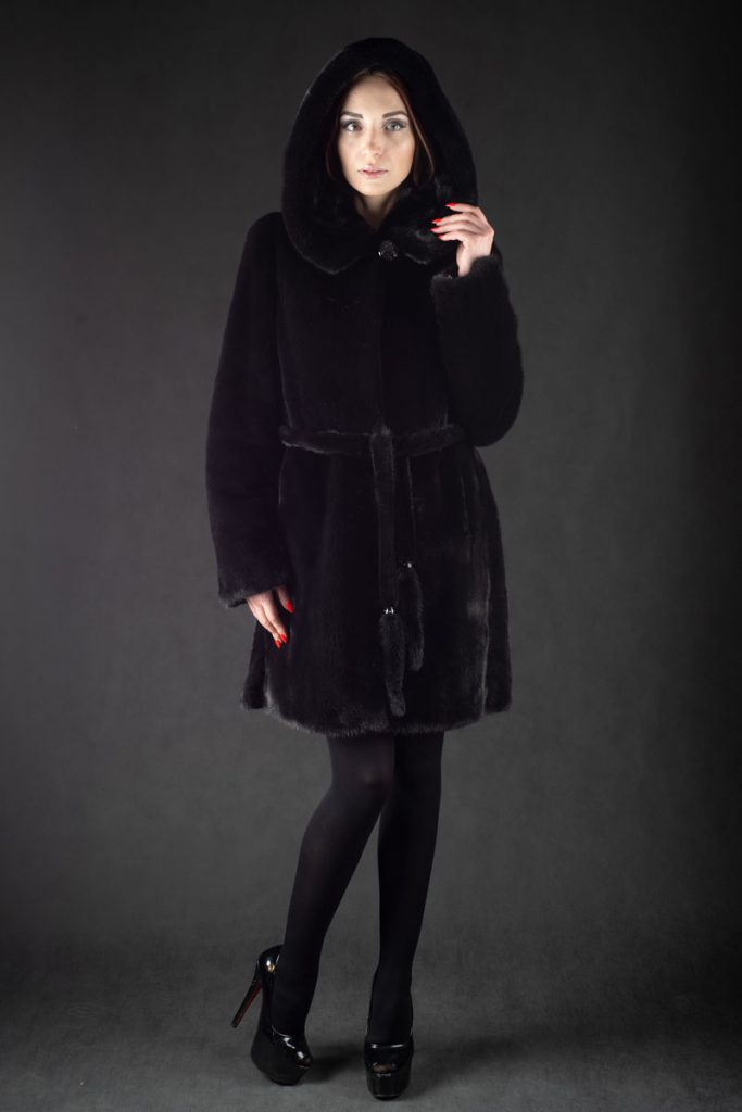 Полупальто из меха норки с капюшоном и поясом, blackglama