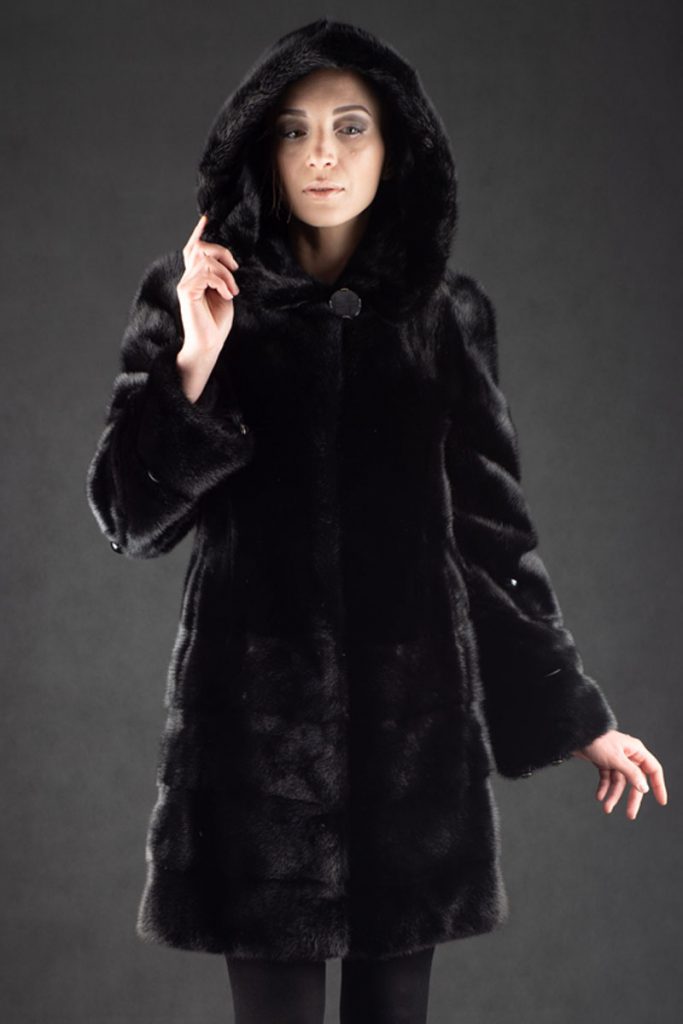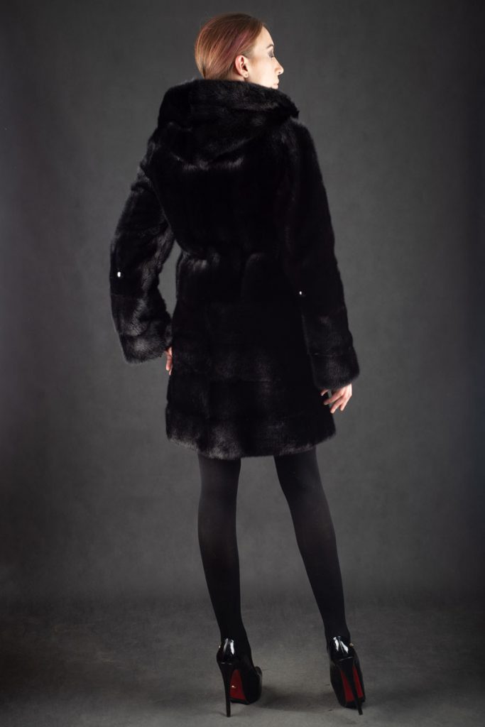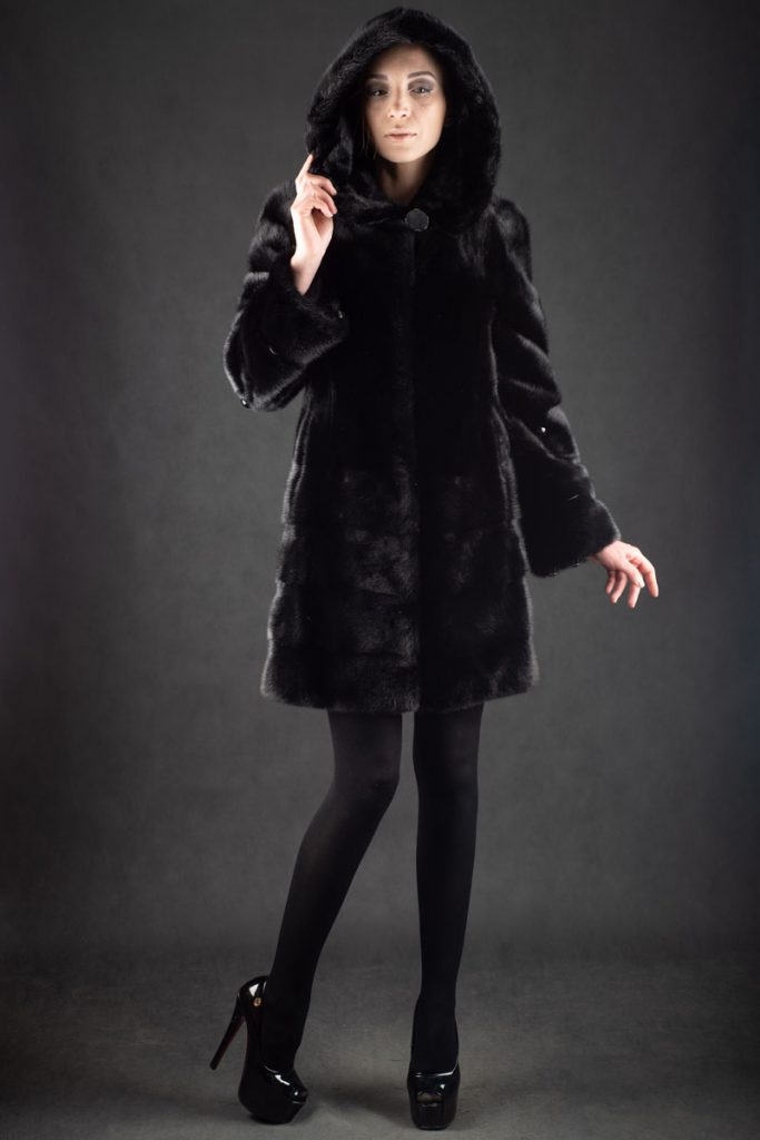 Полупальто из меха норки с капюшоном, клеш, перевертыш